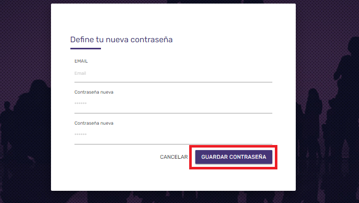 - Confirma tu correo y nueva contraseña. Termina presionando “Guardar Contraseña”.