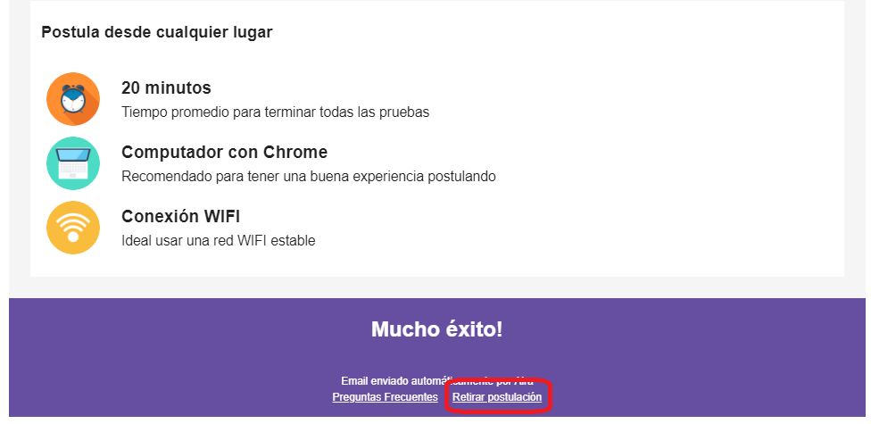 Marca la frase “Retirar postulación”, que está al final del mail.