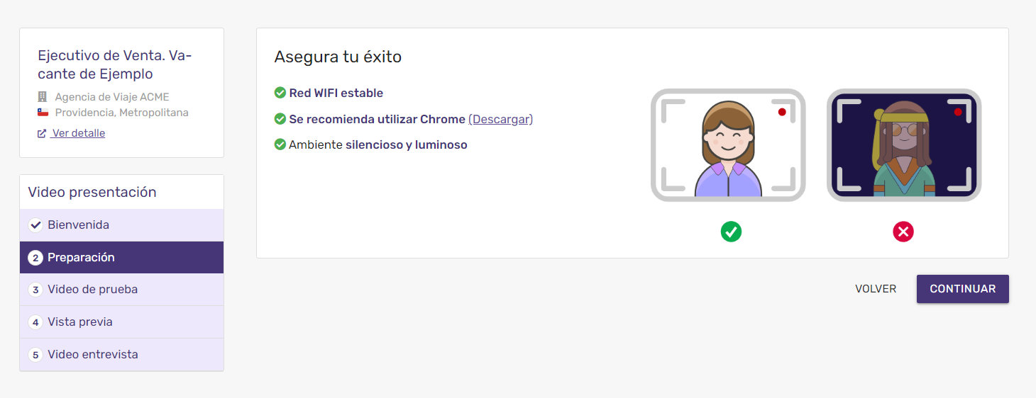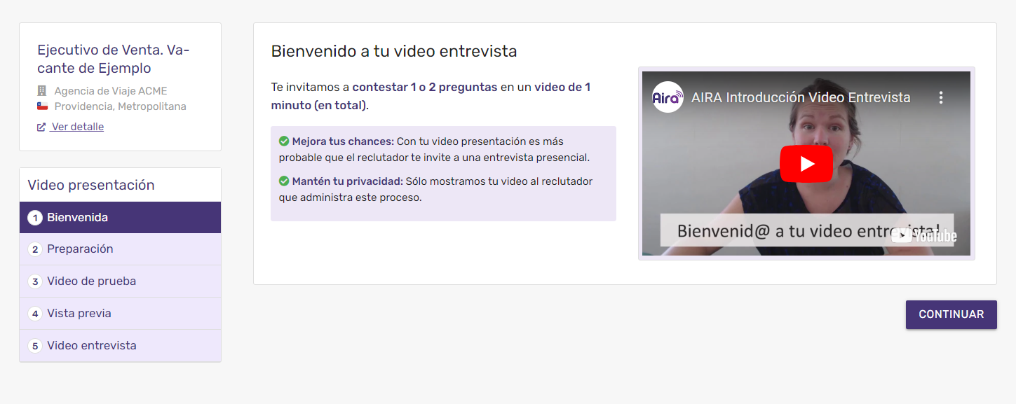 5. Bienvenido a tu video entrevista, dar click en “Continuar”