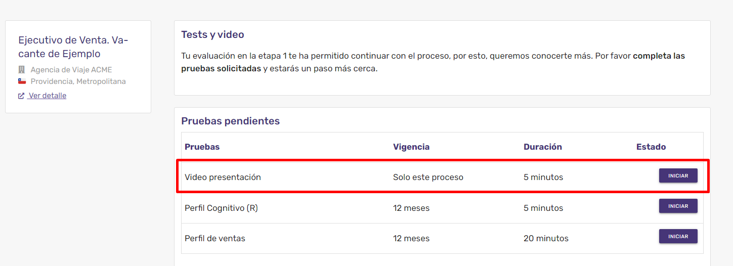 Es relevante mencionar que esta prueba no reemplaza una entrevista en persona, sino que es una primera aproximación con la empresa.