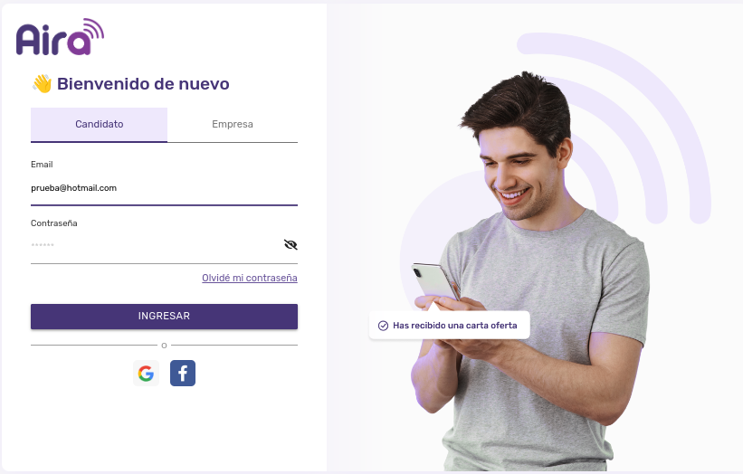 1. Inicia sesión en tu cuenta de Aira: https://aira.airavirtual.com/