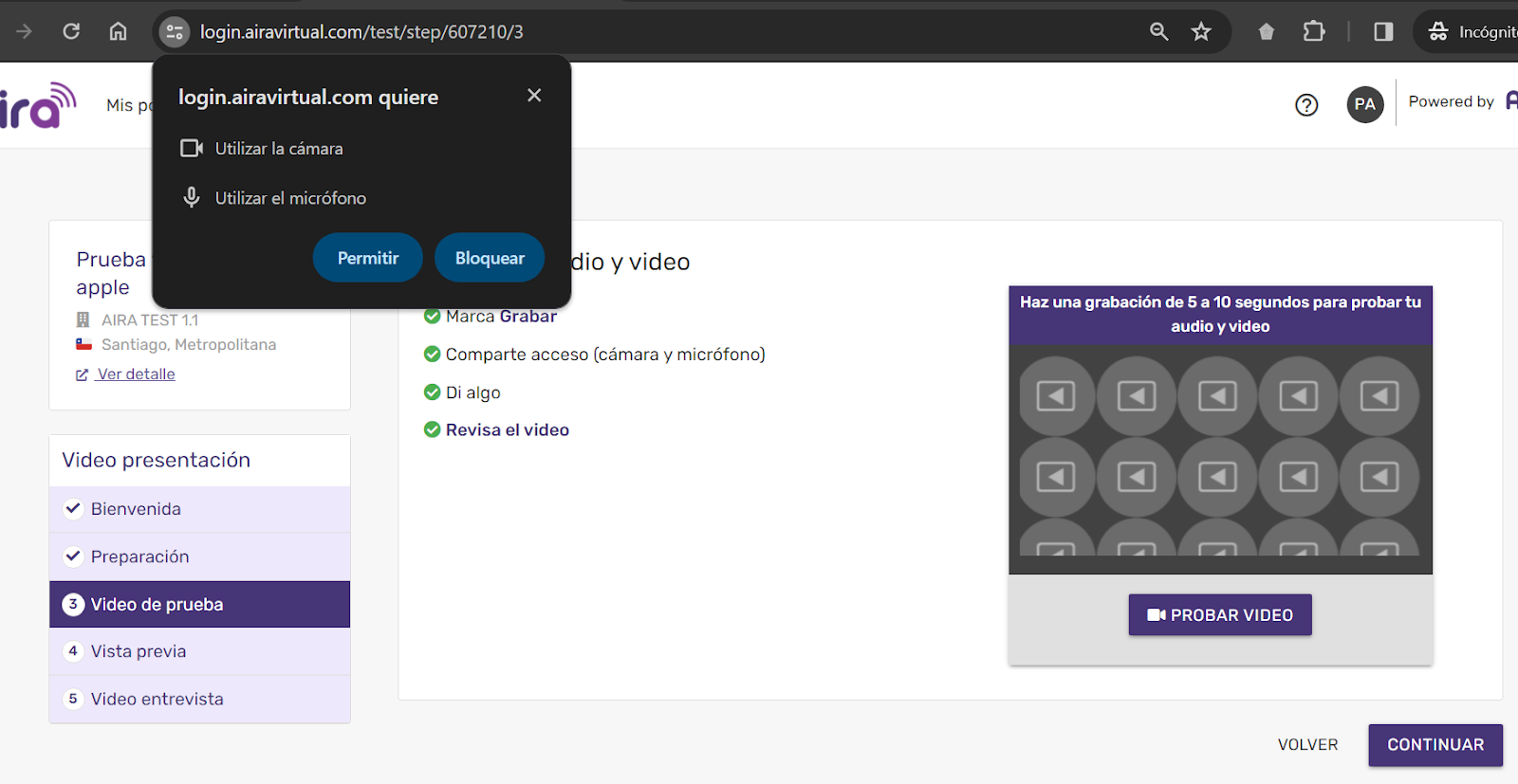 Si aún no funciona, te recomendamos intentar grabarte nuevamente desde otro laptop/computador o tablet con el navegador Chrome o Mozilla Firefox.